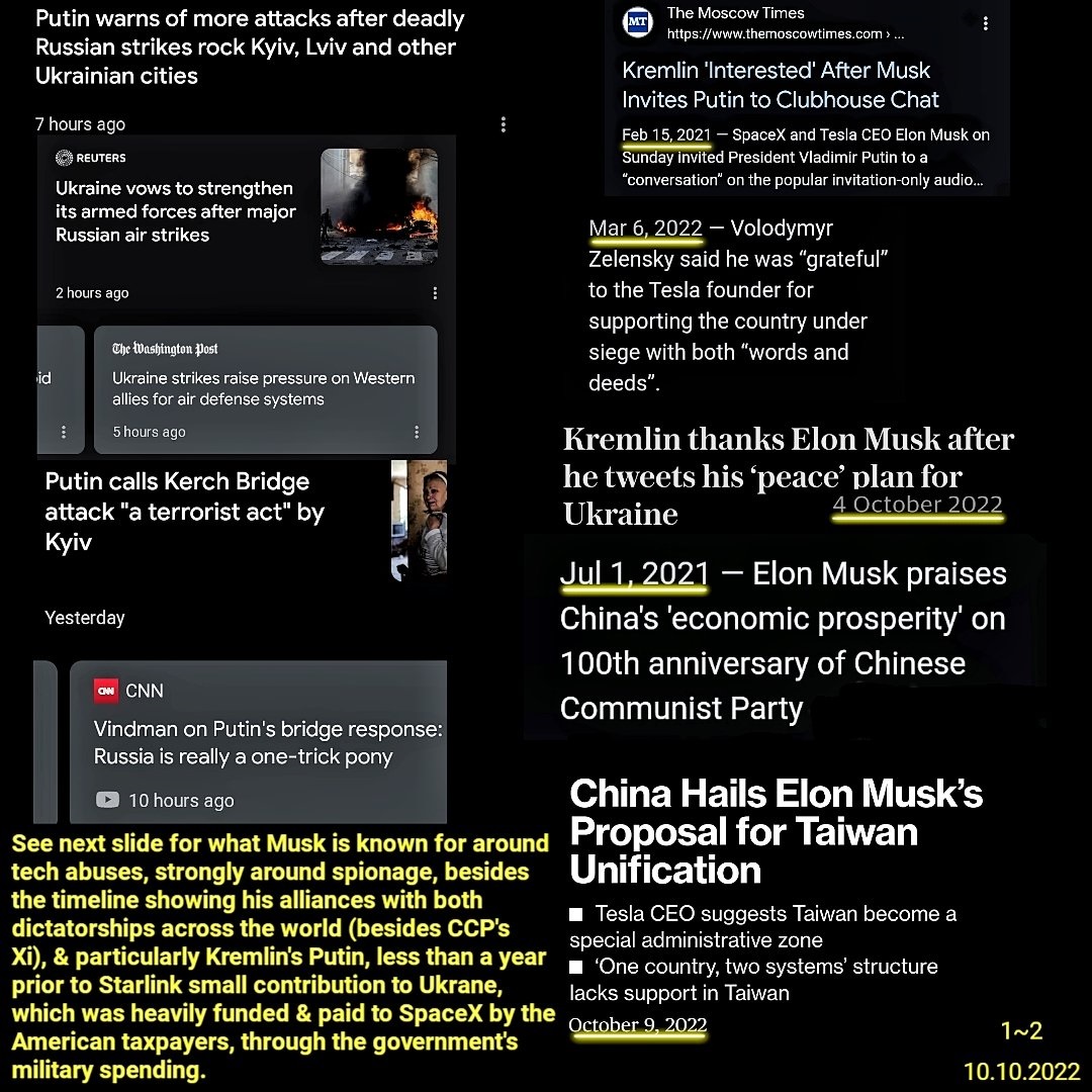 The fact that my devices are live watched and my personal and professional data abused have been proven over and over, including the source/ some of the source of, which is Elon Reeve Musk, CEO of Twitter, SpaceX, Starlink (satellite dishes offered for free to Ukraine), Neuralink, Tesla, Boring Company.